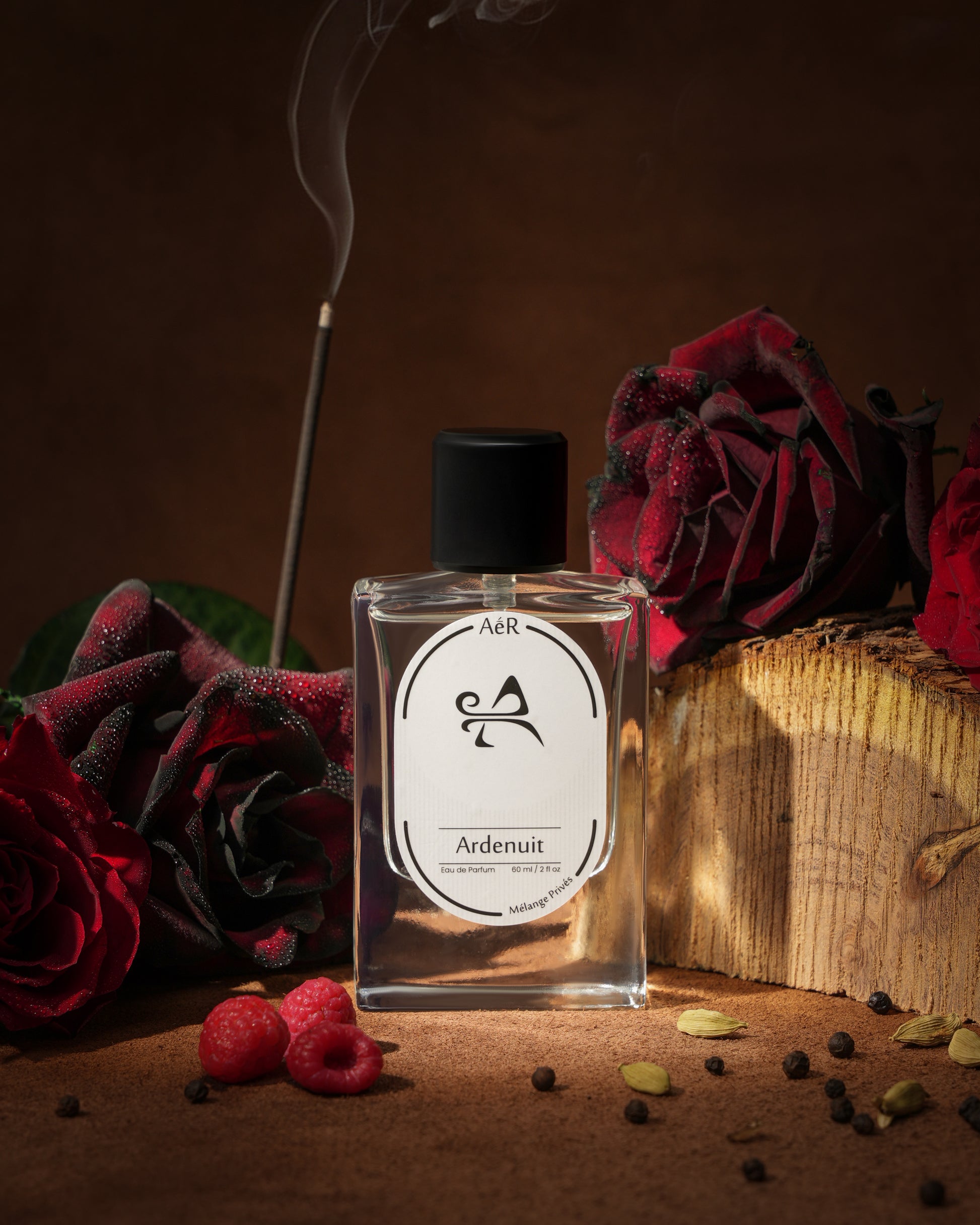 Ardenuit is fire veiled in smoke, a fragrance that smolders with quiet intensity. The richness of oud and dark woods wraps around the skin like smoke, softened by a subtle sweetness that lingers close, intimate and elusive. It is both raw and refined, a composition that tempts as much as it commands.